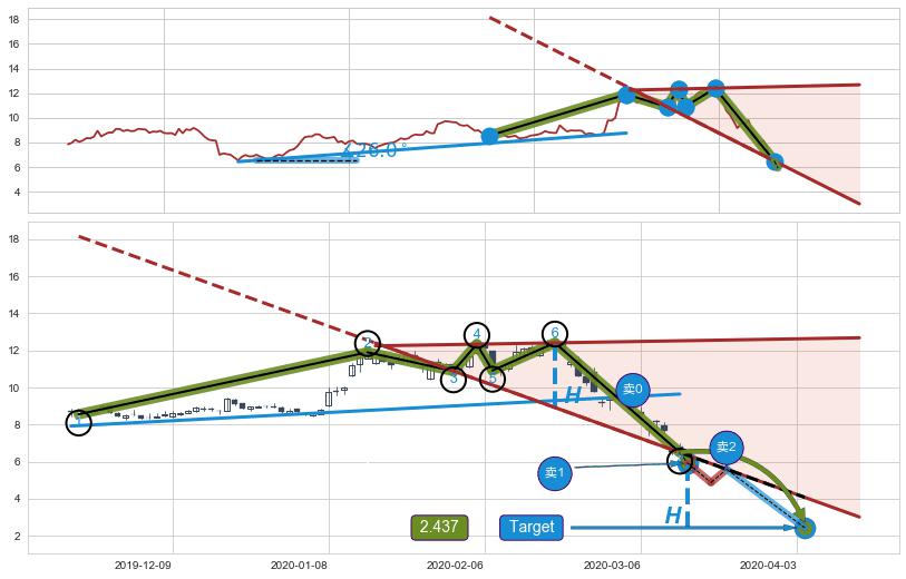➢ 【卖0】上涨趋势线在→(2020-03-05: 9.52 )被突破,反转趋势形成