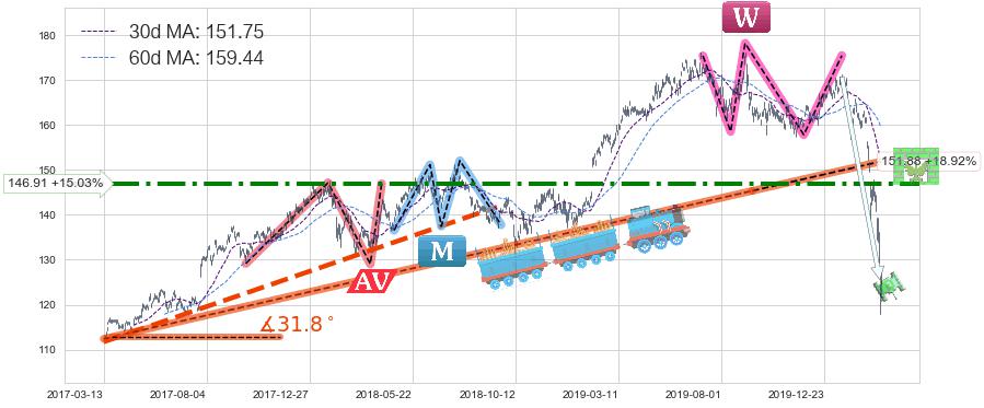 ♘ 阻力价格位146.91,可信任强度80.29%,距离最后交易2020-03-13形成的收盘价格127.72相差 +15.03%