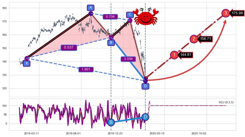 ➣ 已完成【螃蟹】形态起点X: 2019-01-25, 终点D: 2020-03-12, 共285交易日