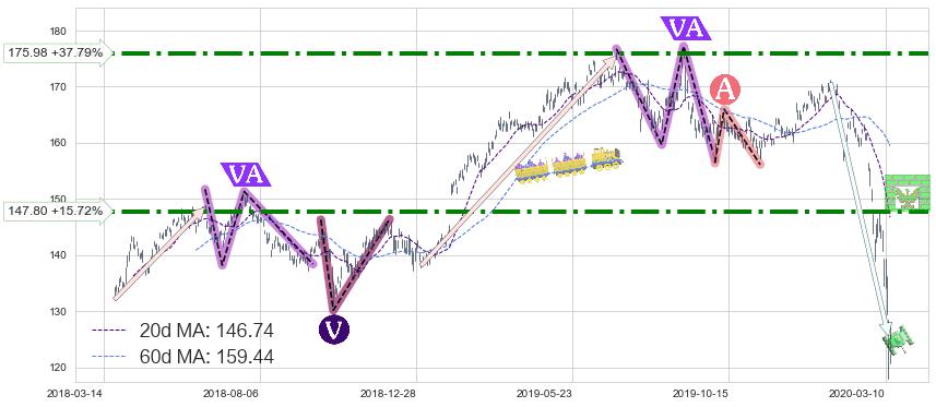 ➣ 【已达成】最小【反转】第一目标价格→(2020-03-09: 135.44 ), 后续继续【反转】下跌动力依然存在,下跌空间适中