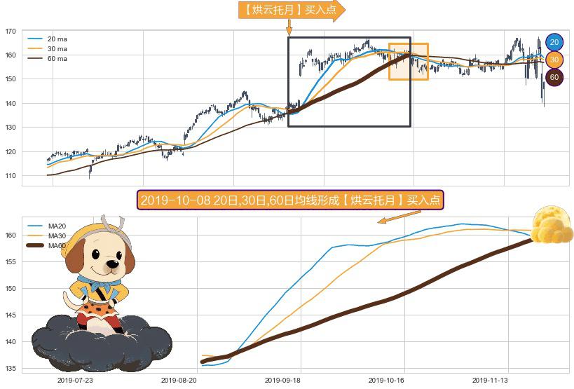 ⚀ 2019-08-21日-2019-11-22日显现 20日-30日-60日均线 【烘云托月】买入点 看多信号,后市看涨,买入