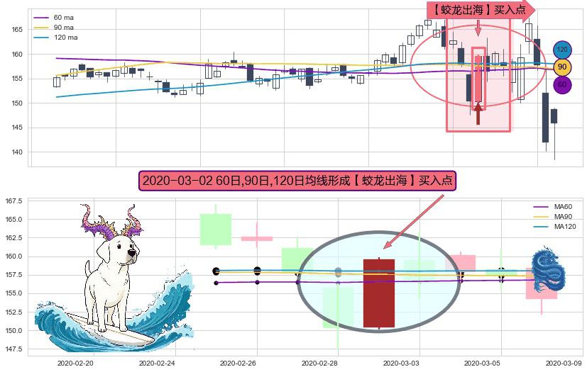 ⚀ 2020-03-02日显现 60日-90日-120日均线 【蛟龙出海】买入点 看多信号,后市看涨,买入