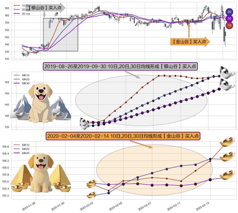 ⚃ 2020-02-05-日至2020-02-14-日显现 10日-20日-30日均线 【金山谷】买入点 其再次确认了买入信号,可靠性更强,买入