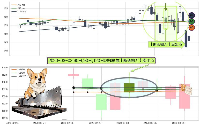 ⚀ 2020-03-03日显现 60日-90日-120日均线 【断头铡刀】卖出点 看空信号,后市看跌,卖出