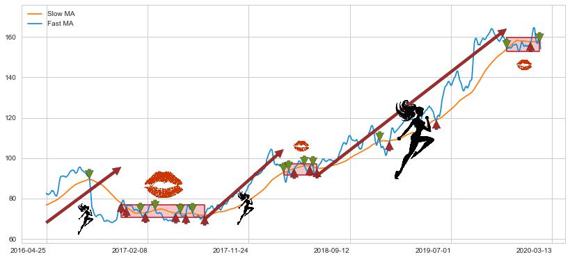 2016-11-22至2017-07-24 慢线与快线多次接触,存在上下穿越,有缠绕