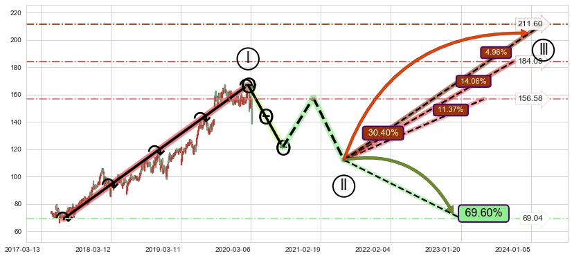♘ 支撑价格位101.28,可信任强度95.27%,距离最后交易2020-03-13形成的收盘价格145.81相差 -30.54%
