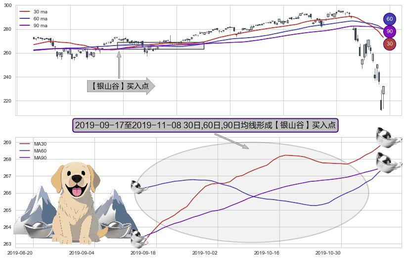 形态多维评估: ⚀ 2019-09-18-日至2019-11-08-日显现 30日-60日-90日均线 【银山谷】买入点 看多信号,后市看涨,买入