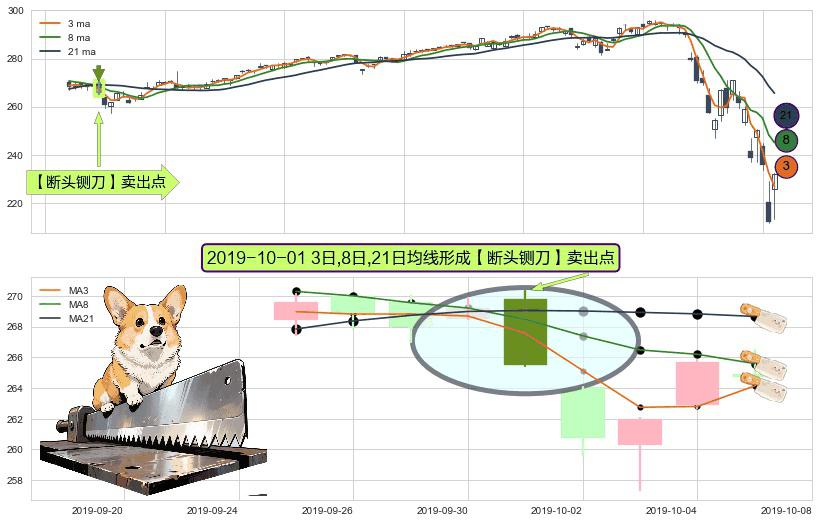 形态多维评估: ⚀ 2019-10-01日显现 3日-8日-21日均线 【断头铡刀】卖出点 看空信号,后市看跌,卖出
