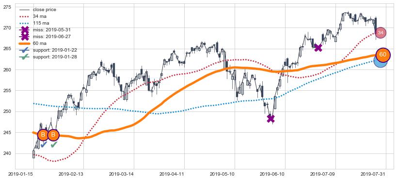 上涨趋势2019-01-15-2019-07-31,均线60确认关键支撑2处