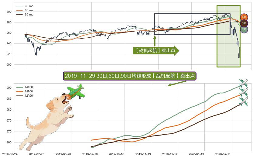 形态多维评估: ⚀ 2019-09-11日-2020-02-21日显现 30日-60日-90日均线 【战机起航】卖出点 看空信号,后市看跌,卖出