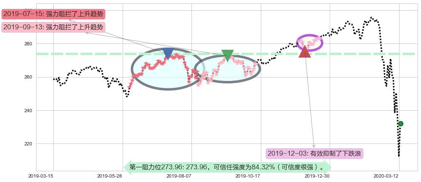 ♘ 阻力价格位273.96,可信任强度84.32%,距离最后交易2020-03-13形成的收盘价格232.11相差 +18.03%