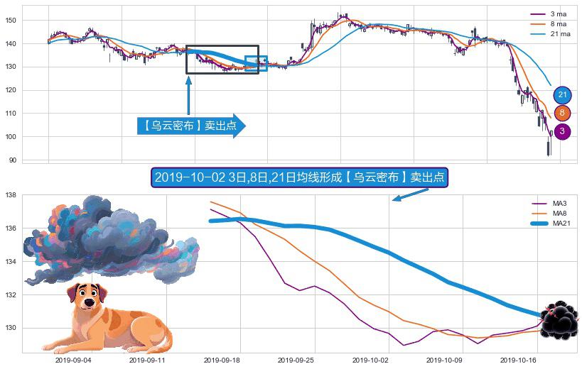 形态多维评估: ⚀ 2019-09-16日-2019-10-17日显现 3日-8日-21日均线 【乌云密布】卖出点 看空信号,后市看跌,卖出