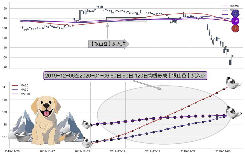 形态多维评估: ⚀ 2019-12-09-日至2020-01-06-日显现 60日-90日-120日均线 【银山谷】买入点 看多信号,后市看涨,买入