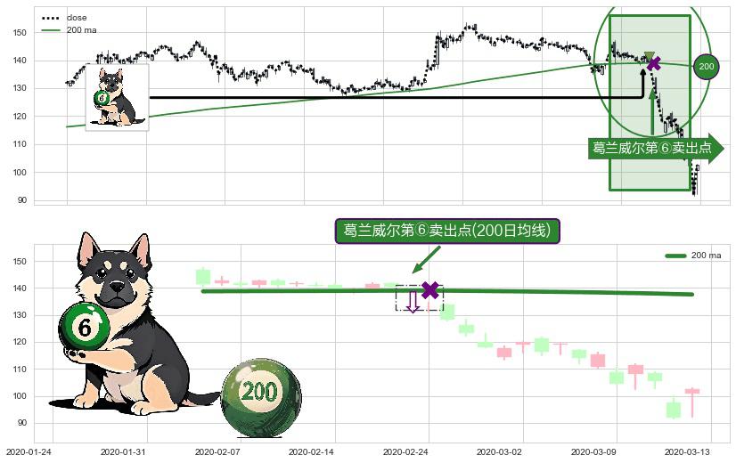 形态多维评估: ⚀ 2020-02-21-日显现 葛兰威尔均线 200日均线 第⑥卖出点 走势反转见顶信号,后市看跌,卖出信号
