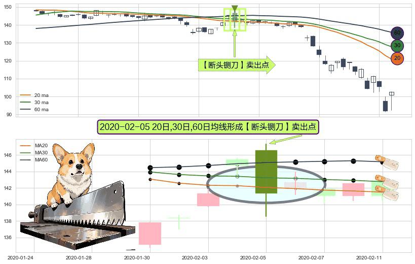 形态多维评估: ⚀ 2020-02-05日显现 20日-30日-60日均线 【断头铡刀】卖出点 看空信号,后市看跌,卖出