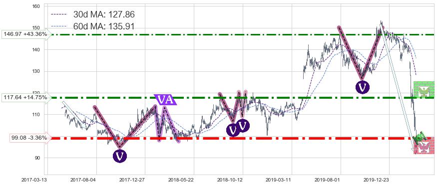 ♘ 支撑价格位99.08,可信任强度93.89%,距离最后交易2020-03-13形成的收盘价格102.52相差 -3.36%