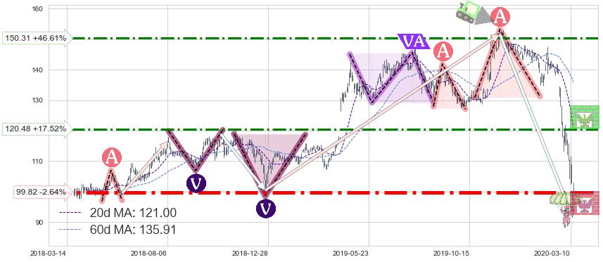 ♘ 阻力价格位120.48,可信任强度58.08%,距离最后交易2020-03-13形成的收盘价格102.52相差 +17.52%