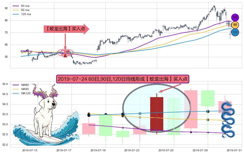 ⚀ 2019-07-24日显现 60日-90日-120日均线 【蛟龙出海】买入点 看多信号,后市看涨,买入