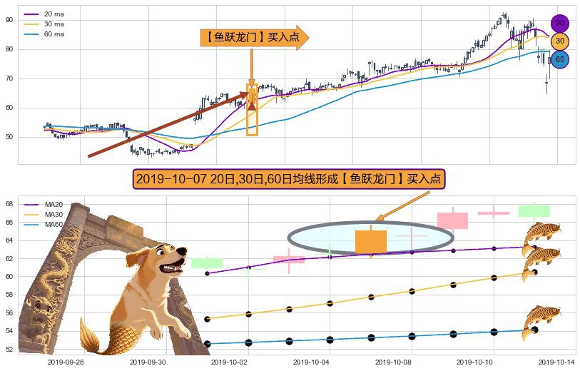 ⚀ 2019-10-07日显现 20日-30日-60日均线 【鱼跃龙门】买入点 看多信号,后市看涨,买入