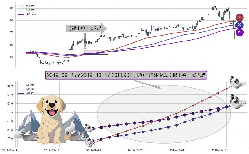 ⚀ 2019-09-26-日至2019-10-17-日显现 60日-90日-120日均线 【银山谷】买入点 看多信号,后市看涨,买入