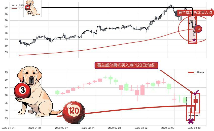 ⚀ 2020-03-13-日显现 葛兰威尔均线 120日均线 第③买入点 上升趋势的中继信号,后市看涨,买进信号