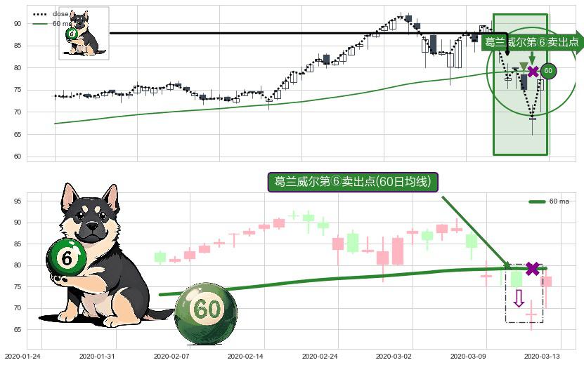 ⚀ 2020-03-11-日显现 葛兰威尔均线 60日均线 第⑥卖出点 走势反转见顶信号,后市看跌,卖出信号