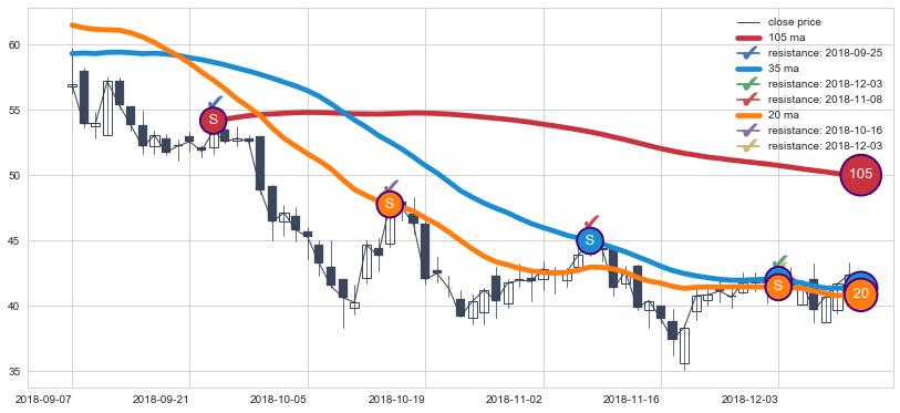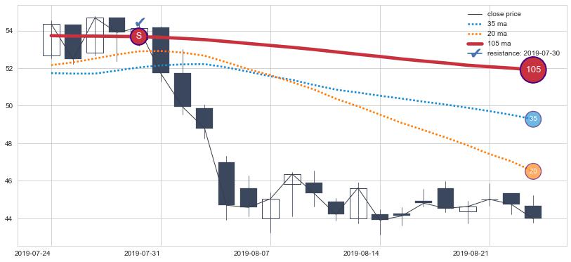 ⚃ 在破位点附近ma走势明显平稳迹象,稍后的走势中ma下垂迹象也出现,信号【可信度中等偏上】