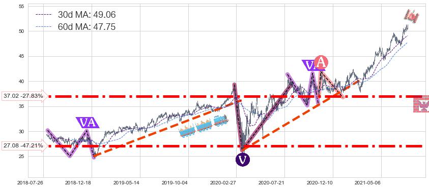 ♘ 支撑价格位37.02,可信任强度93.52%,距离最后交易2021-07-23形成的收盘价格51.30相差 -27.83%