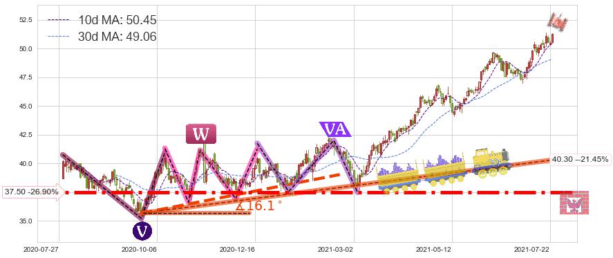 ♘ 支撑价格位37.50,可信任强度95.74%,距离最后交易2021-07-23形成的收盘价格51.30相差 -26.90%