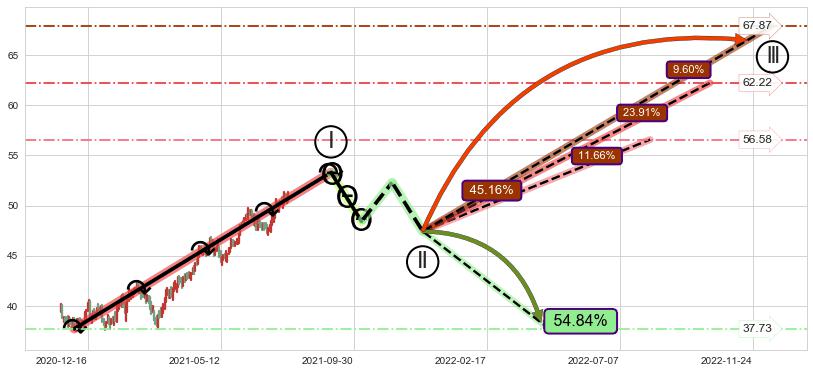 ➣ 5.1: 预测当前第5浪位置(2021-07-23, 51.30),仍然有上升空间