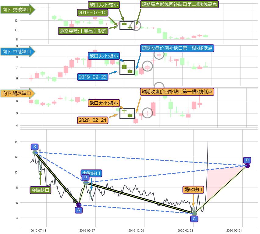 ➢ 2020-02-21形成:向下跳空【竭尽】缺口