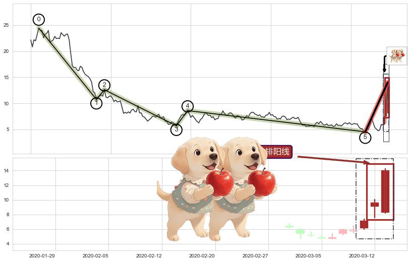 ➣ AI预测: 假定反转启动后, 第❶目标位置(2020-05-22, 8.44)