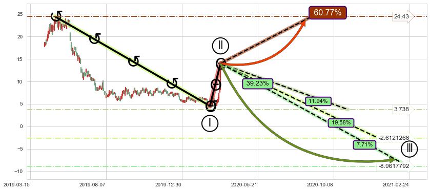 ➣ AI预测: 假定反转启动后, 第❸目标位置(2020-06-15, 4.54)