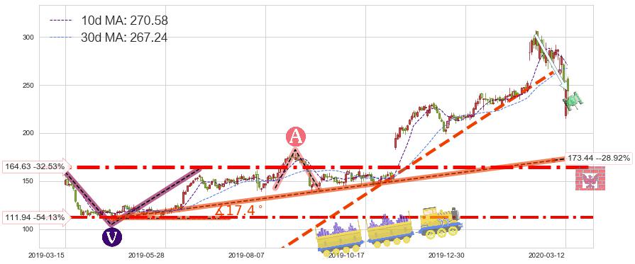 ♘ 支撑价格位164.63,可信任强度91.09%,距离最后交易2020-03-13形成的收盘价格244.02相差 -32.53%