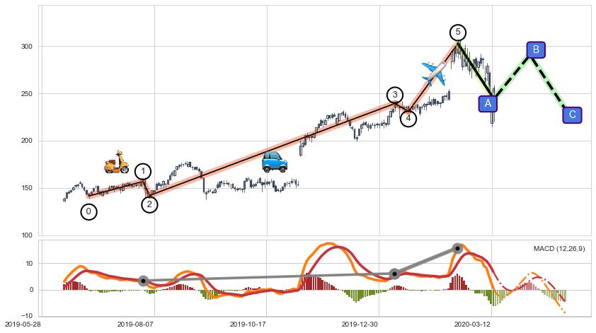 ➣ 第一, 三, 五浪上涨动能逐渐【增强变大】,趋势不断加固