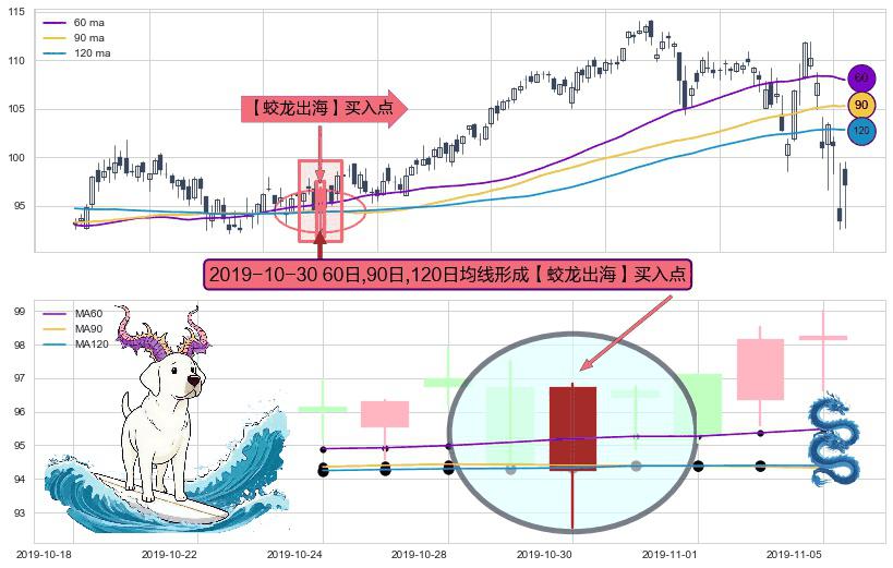 ⚀ 2019-10-30日显现 60日-90日-120日均线 【蛟龙出海】买入点 看多信号,后市看涨,买入