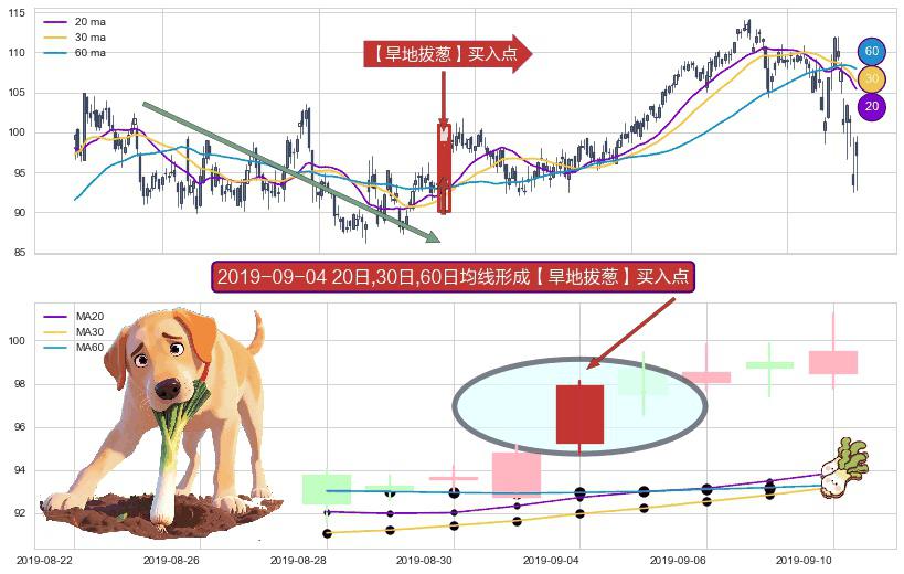 ⚀ 2019-09-04日显现 20日-30日-60日均线 【旱地拔葱】买入点 看多信号,后市看涨,买入