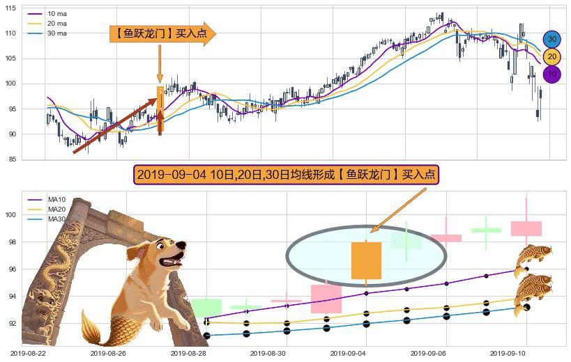 ⚀ 2019-09-04日显现 10日-20日-30日均线 【鱼跃龙门】买入点 看多信号,后市看涨,买入