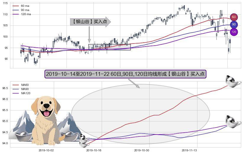 ⚀ 2019-10-15-日至2019-11-22-日显现 60日-90日-120日均线 【银山谷】买入点 看多信号,后市看涨,买入
