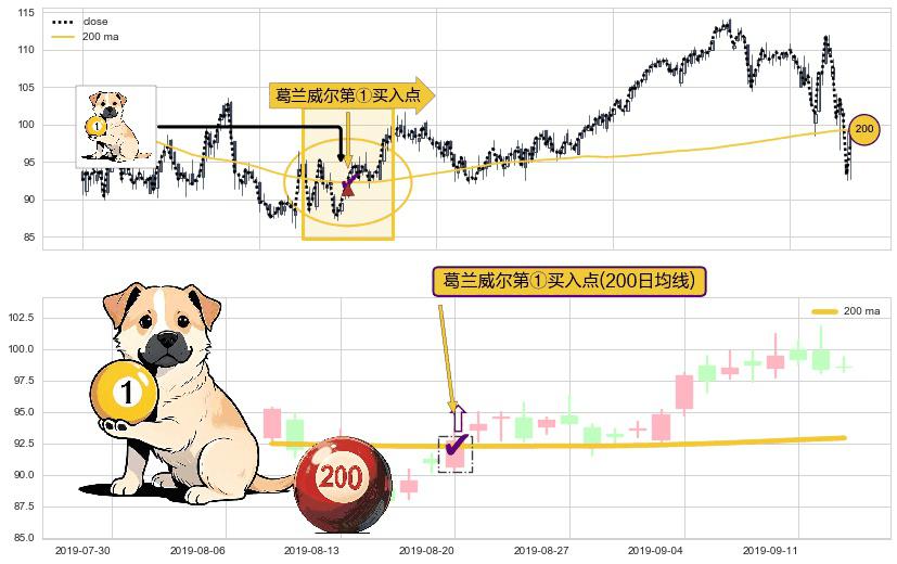⚀ 2019-08-20-日显现 葛兰威尔均线 200日均线 第买①入点 走势反转见底信号,后市看涨,买进信号