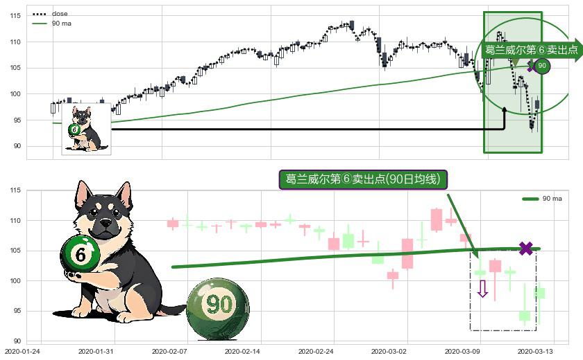 ⚀ 2020-03-09-日显现 葛兰威尔均线 90日均线 第⑥卖出点 走势反转见顶信号,后市看跌,卖出信号