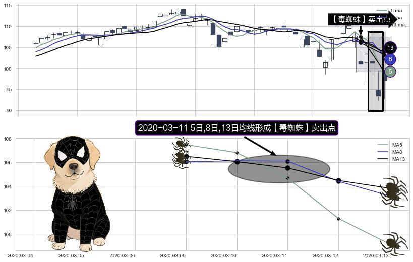 ⚀ 2020-03-11日显现 5日-8日-13日均线 【毒蜘蛛】卖出点 看空信号,后市看跌,卖出