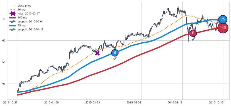⚅ 买点向上突破均线后,价格走势很纠结,不断在均线周围试探,有再次下探破位均线的可能