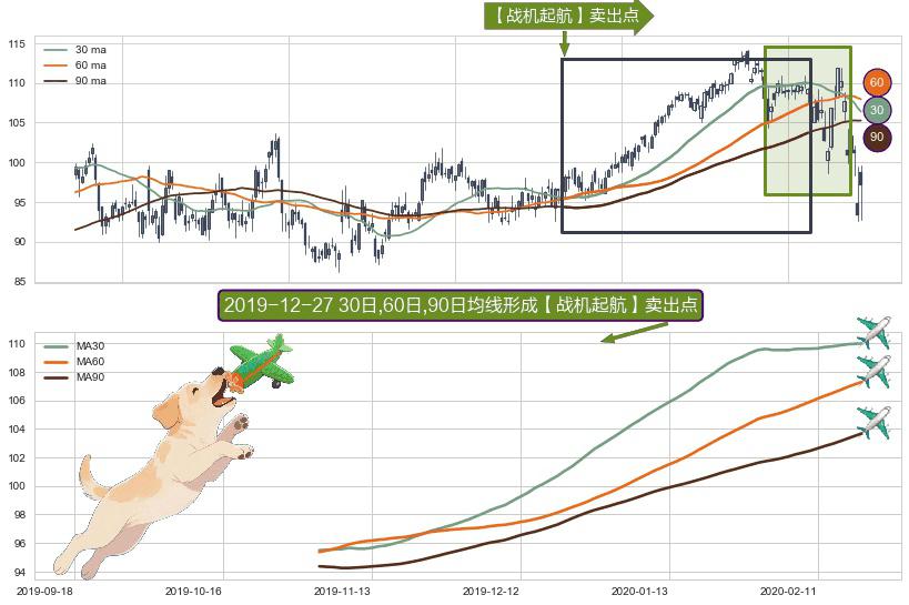 ⚀ 2019-11-04日-2020-02-20日显现 30日-60日-90日均线 【战机起航】卖出点 看空信号,后市看跌,卖出