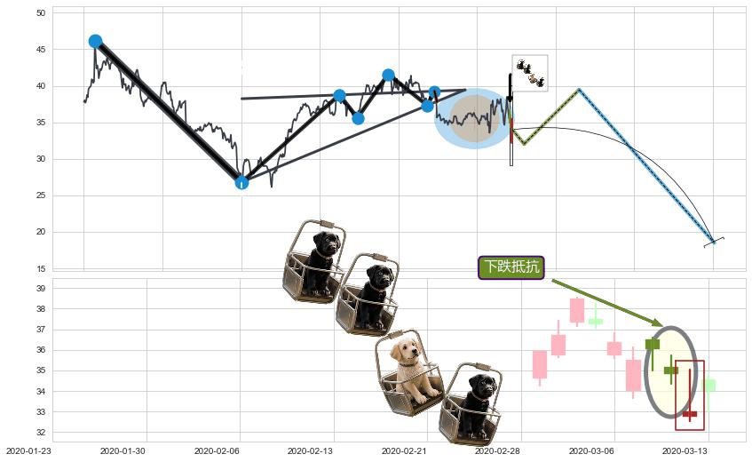 | 2 🅚:看跌(高位倒锤头)流星线 ➕ 📐:升楔型下行突破支撑位破位, 猜想持续下沉下跌,被突破的支撑位已变为阻力位 ☞ 看空信号 ⇥ 【🅚线】交织【图形】⇥ 综合量化分数: 40 | > |