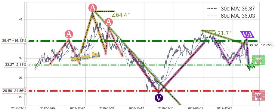 ♘ 阻力价格位39.47,可信任强度97.15%,距离最后交易2020-03-13形成的收盘价格33.99相差 +16.13%