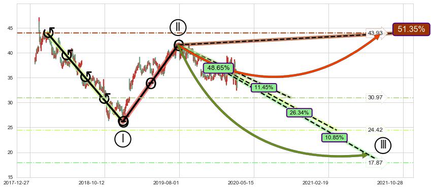 ➣ 大趋势循环浪继续向下概率48.65%