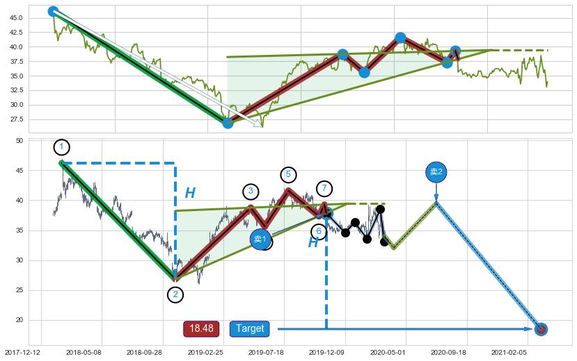 ➣ 【已确认突破】最后价格:33.99与最小【整理】第一目标价格→(2021-03-09: 18.48 )相较: 下跌空间【较大】
