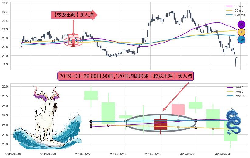 形态多维评估: ⚀ 2019-08-28日显现 60日-90日-120日均线 【蛟龙出海】买入点 看多信号,后市看涨,买入