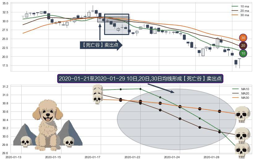形态多维评估: ⚀ 2020-01-22-日至2020-01-29-日显现 10日-20日-30日均线 【死亡谷】卖出点 看空信号,后市看跌,卖出